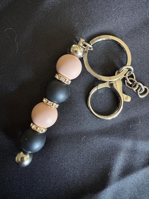 Schlüsselanhänger Rosa und Schwarz mit Rosenquarz Stein