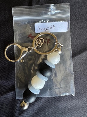 Schlüsselanhänger Weiss und Schwarz mit Angelit Steine